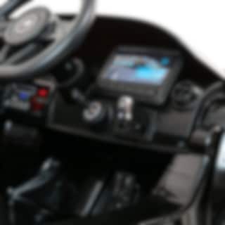Flera reglage finns på kontrollpanel och ratt för att aktivera ljud- och ljus på bilen. Bilstereon har några förinställda melodier, anslutning för MP3-spelare samt Bluetooth så att du kan ansluta din Smartphone och spela musik från t.ex. Spotify. Med inbyggd högtalare kan barnet därefter åka runt i kvarteret och pumpa favoritmusiken så att grannarna blir gröna av avundsjuka!