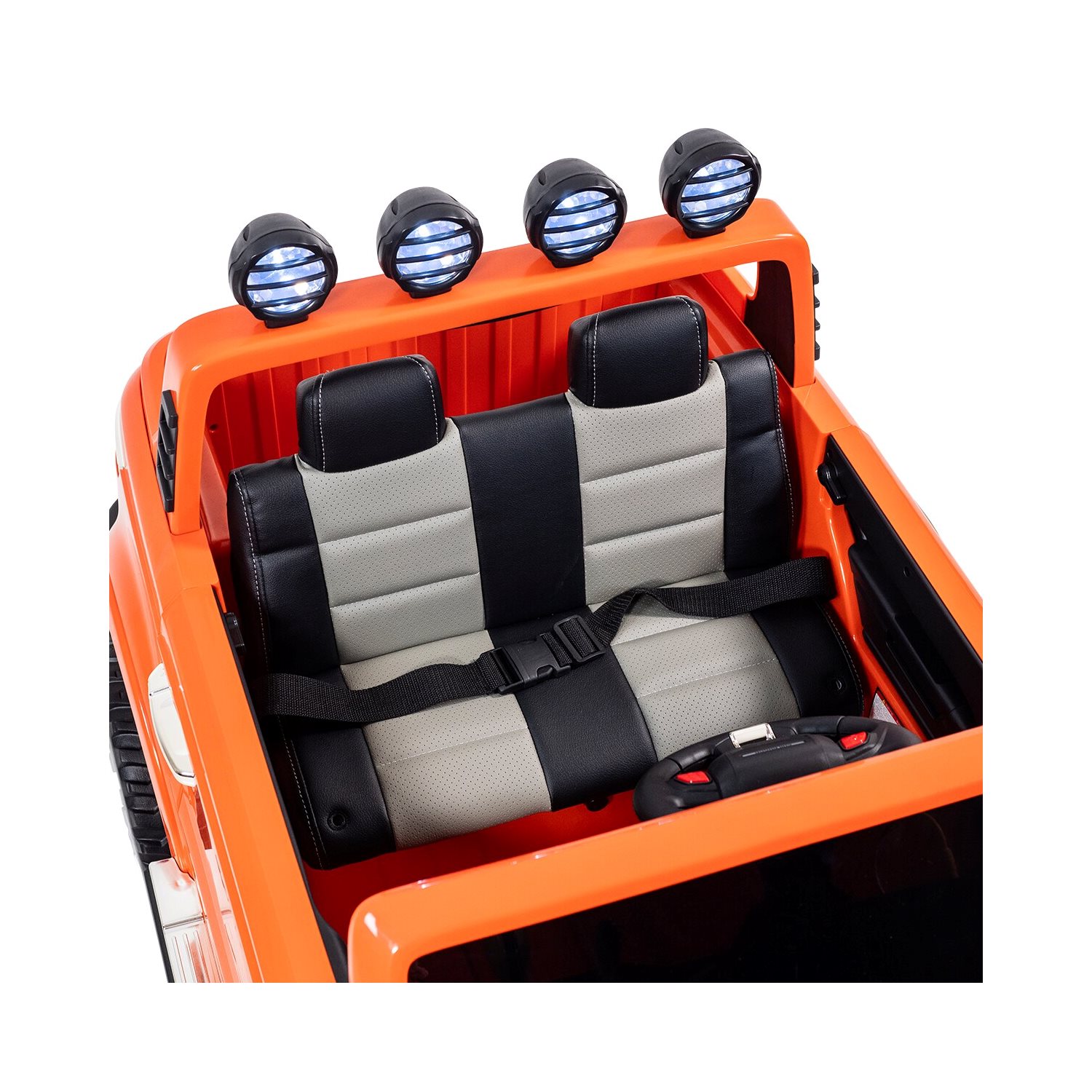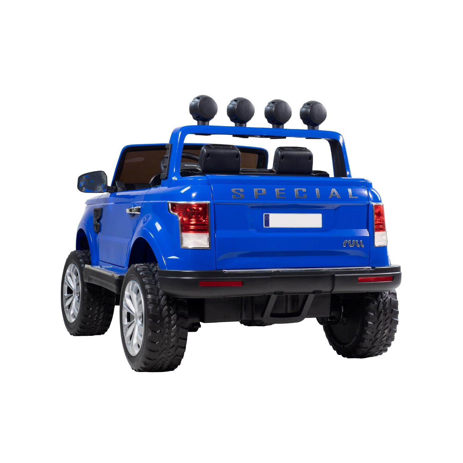 Bäst i test - elbil för barn! 2021 års bästa premiumval. Pickup 4WD Blå är en stor och kaxig pickup med fyrhjulsdrift och plats för två barn och testvinnare i Pricerunners stora test av elbilar för barn. Vår elbil Pickup 4WD Blå är verkligen något som drar till sig blickar, och med finesser som öppningsbara dörrar och baklucka, LED-belysning samt bilstereo blir verkligen upplevelsen total. Modellen har t.o.m. sits i lyxigt och komfortabelt konstläder! Bilen har mjuk start/stopp för behagligare drift utan ryckig gång. Rejäla gummidäck samt stötdämpare ger god komfort. Levereras med fjärrkontroll, 2,4G. Elbil Pickup 4WD Blå levereras med en mängd olika funktioner för att påminna mycket om en riktig bil. Dörrar, motorhuv och lucka till flaket är öppningsbara. Flera förinspelade melodier finns, samt möjlighet att ansluta MP3-spelare, USB-enhet eller SD-kort för att spela din egen favoritmusik. Belysning finns i stråklastarna med fräckt LED-sken, vilket ger effektfulla åkturer även när det är mörkt ute. Bilen är utrustad med fyra el-motorer vilket ger bilen FYRHJULSDRIFT! Detta är en stor fördel då bilen dels får mer kraft samt bättre framkomlighet. Bilen har två hastighetslägen framåt samt backväxel. Framåt kan man köra i upp till 6 km/h. En laddning räcker för upp till 45-90 min "lektid" (beroende på användning) och batteriet laddas fullt på ca: 8 timmar med medföljande laddare. El-bilen är mycket lätt att köra för barnen - gasa med gaspedalen och stanna genom att släppa upp pedalen. Till denna modell ingår även en fjärrkontroll så att du som förälder kan styra om så önskas. Det är även med denna du ställer in vilket hastighetsläge bilen skall ha. Dom lägre hastigheterna är bra för yngre barn eller trånga miljöer. Med fjärrkontrollen kan du som förälder när som helst ta kontroll över bilen om det skulle behövas. OBS: Rekommenderas från 3 år. Använd endast under tillsyn av vuxen. Används ej i trafik. Använd ej nära stup eller vattendrag. Elbilen fordrar slutmontering innan den kan användas. Instruktion på svenska medföljer. Laddare och batteri medföljer.