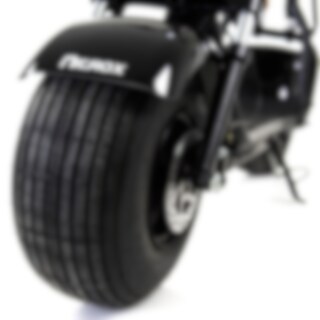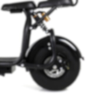 Nitrox Fatbike är elscootrarnas "Harley", med högt styre och grym design. De enorma däcken gör att du tar dig fram komfortabelt på såväl släta som ojämna underlag. Dessutom är scootern försedd med stötdämpning både fram och bak. Den kraftfulla elmotorn med 1500W effekt gör att du kryssar uppför backar med enkelhet. Toppfarten mäter ca: 35-40 km/h och det med god acceleration. Elmotorn får sin kraft från ett stort litiumbatteri med 60V 12Ah (720Wh) kapacitet. En laddning ger en räckvidd på upp till 20 km vid ekonomisk körstil. Med Nitrox Fatbike Litium kan du även känna dig trygg med att snabbt kunna få stopp på scootern, då modellen utrustats med hydraulisk skivbroms både fram och bak.